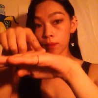 4. 오른손을 모아 뺨 아래로 쓸어내리며 모으고 머리 옆에다 오른손 검지를 붙여 쓸어내린다. = ' 반하다 ' 묘사.