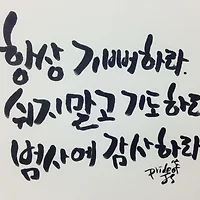 | [지후트리캘리그라피] 항상 기뻐하라, 쉬지말고 기도하라. 범사에 감사하라. (1) | 2013.11.29 |