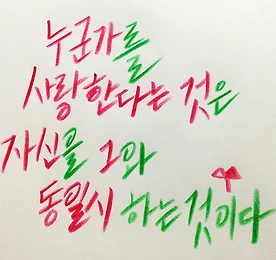 손글씨 썸네일형 리스트형 [지후트리 캘리그라피]울지말고 강해져라. 그게 니 목표다. [지후트리캘리그라피] 울지말고 강해져라. 그게 니 목표다. 경쟁을 종용 당하고, 남을이 다 하니까 연애하고, .. 너는 울고 만다. 내 스스로가 아닌 누군가의 명령에 의해. 울지 말고 강해져라. 더보기 [지후트리 캘리그라피] 펄벅 명언 - 사랑은 성장이 멈출 때만 죽는다. [지후트리 캘리그라피] 펄벅 명언 사랑은 성장이 멈출 때만 죽는다. 자신을 벅차오르게 만드는 무언가가 있는가 ? 설레인다는 것은 자신이 성장을 하고 있다는 증거이기도 하다. 내가 이만큼이나 이자리에 서 있을 수 있는 것도 내 가슴이 뛰고 있는 반증이기도 하다. △▲지후트리 더보기 [지후트리 캘리그라피]키케로 명언 - 삶이 있는 한 희망은 있다 [지후트리 캘리그라피]키케로 명언 삶이 있는 한 희망은 있다 왜 사느냐는 질문엔 명확한 답변은 없다. 살아 있기 때문에 고로 존재하고 있다는 것 이외엔 내가 왜 살아가느냐에 대한 본질적인 대답은 없다. 내가 존재하니까 난 살아간다. 더보기 [지후트리 캘리그라피]윌리엄 셰익스피어 명언 - 원래 좋고 나쁜 것은 다 생각하기 나름이다. [지후트리 캘리그라피]윌리엄 셰익스피어 명언원래 좋고 나쁜 것은 다 생각하기 나름이다. 더보기 [지후트리 캘리그라피]벤자민 프랭클린 명언 - 신념만 가지고 따르는 것은 맹목적으로 따르는 것과 같다. [지후트리 캘리그라피]벤자민 프랭클린 명언신념만 가지고 따르는 것은 맹목적으로 따르는 것과 같다. 한가지 방향이 아니라 여러가지 방향도 모색할 줄 아는 사람이 되어야 한다. 길을 여러가지 열어두는 것도 하나의 방법이기 때문이다. 더보기 [지후트리 캘리그라피] 프랭클린 D. 루스벨트 명언 - 인간은 운명의 포로가 아니라 단지 자기 마음의 포로일 뿐이다. [지후트리 캘리그라피] 프랭클린 D. 루스벨트 명언 인간은 운명의 포로가 아니라 단지 자기 마음의 포로일 뿐이다. 스스로를 통제하는 것은 결국 나 라는 것을.점점 느껴간다. 더보기 [지후트리 캘리그라피] 조지 헨리 루이스 명언 - 슬픔의 유일한 치료제는 행동이다. [지후트리 캘리그라피] 조지 헨리 루이스 명언슬픔의 유일한 치료제는 행동이다. 내가 필요로 하는 존재라 느껴질때에는 바로 이곳 저곳에서 움직일때인 것 같다. 내가 살아 숨쉬는 증거니까. 더보기 [지후트리 캘리그라피] 존 러스킨 명언 - 인생은 흘러 가는 것이 아니라 채워지는 것이다. [지후트리 캘리그라피] 존 러스킨 명언 인생은 흘러가는 것이 아니라 채워지는 것이다. 우리는 하루하루를 보내는 것이 아니라 내가 가진 무엇으로 채워가는 것이다. 수많은 물음 중에 나는 답변을 찾아 가는 중이다. 내가 무엇을 원하는지, 내가 어떤 일을 할 수 있는지를 말이다. 언제나 답변은 스스로에게 있다. △▲지후트리 더보기 [지후트리 캘리그라피] 아리스토 텔리스 명언 - 누군가를 사랑한다는 것은 자신을 그와 동일시 하는 것이다. [지후트리 캘리그라피] 아리스토 텔리스 명언누군가를 사랑한다는 것은 그와 동일시 하는 것이다. 사랑한다는 것은 닮아가는 것이 아닌가 싶다. 공유하고 교감하는 그런 사랑스러운 관계! 더보기 [지후트리캘리그라피] 트라이언 에드워즈 명언 - 어떤 것을 완전히 알려거든 그것을 다른 이에게 가르쳐라. [지후트리캘리그라피] 트라이언 에드워즈 명언어떤 것을 완전히 알려거든 그것을 다른 이에게 가르쳐라. 복습은 더할 나위 없는 예습이 된다. 내가 알 고 있는 것을 남에게 가르쳐주는 것은 다시 한번 내 머릿 속에 각인 시키는 일과도 같다. 더보기 이전 1 2 3 4 ··· 11 다음